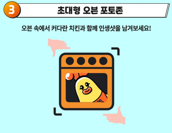 - 오븐 속에서 커다란 치킨과 함께 인생샷을 남길 수 있는 초대형 오븐 포토존