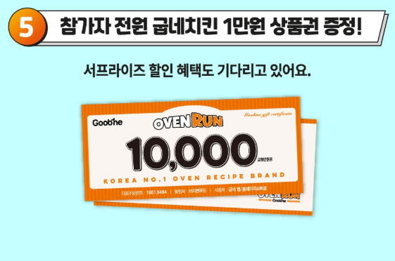 - 참가자 전원 굽네치킨 1만 원 상품권 증정 및 서프라이즈 할인 혜택까지 준비